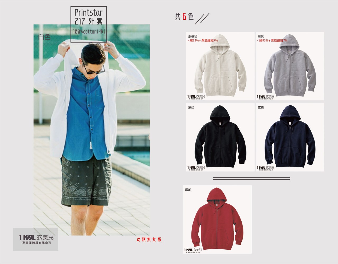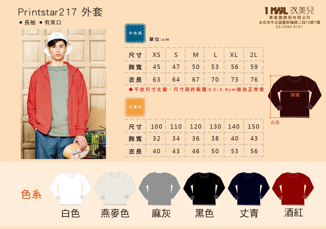 Printstar217外套(全棉.內裡無刷毛) / 共6色