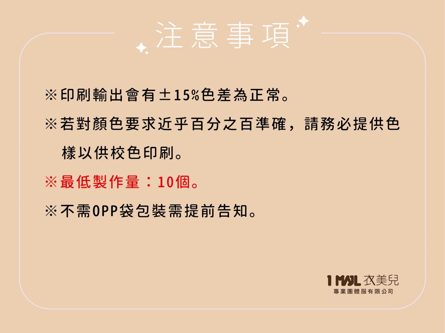 ※若對顏色要求近乎百分之百準確,請務必提供色樣以供校色印刷。