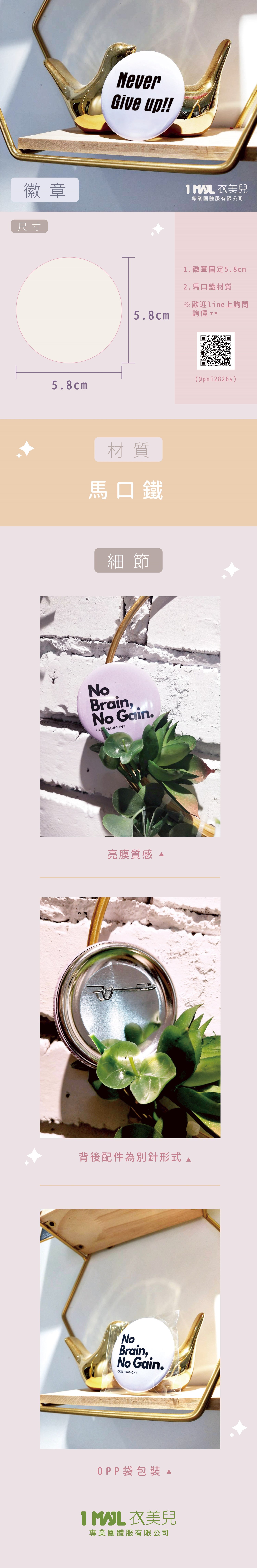 亮膜圓形馬口鐵徽章,可少量客製,適合禮贈品、動漫展覽、演唱應援會.....等