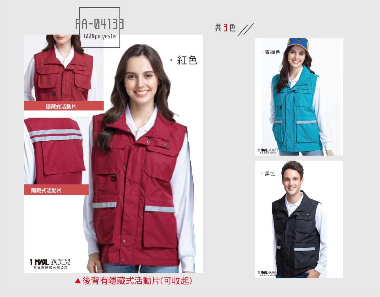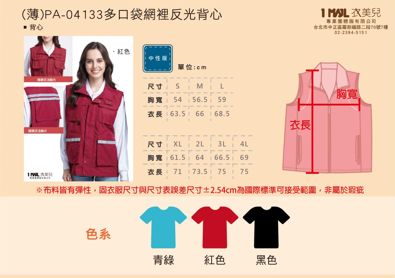 (薄)PA-04133多口袋網裡反光背心/紅色