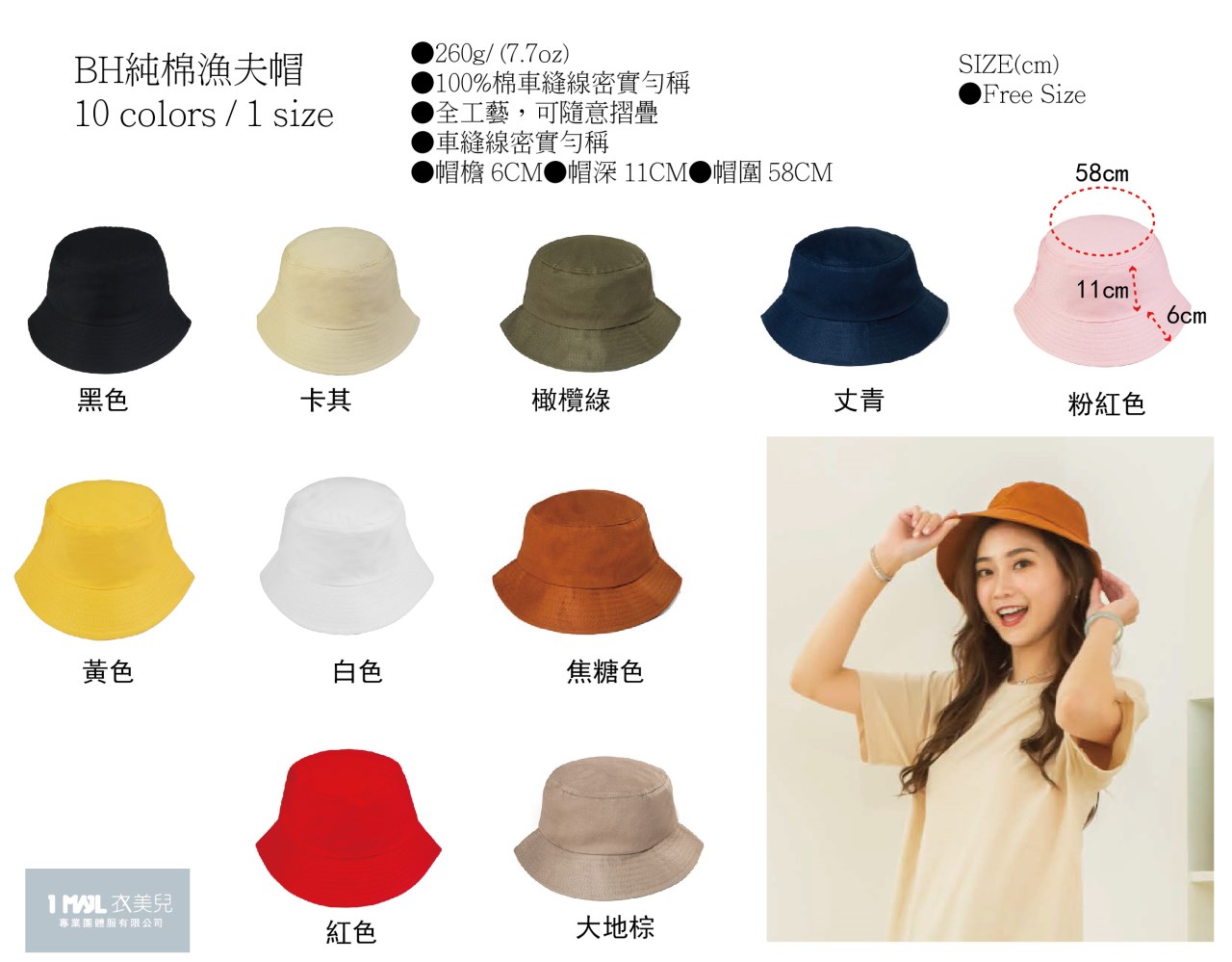 BH純棉漁夫帽/共10色
