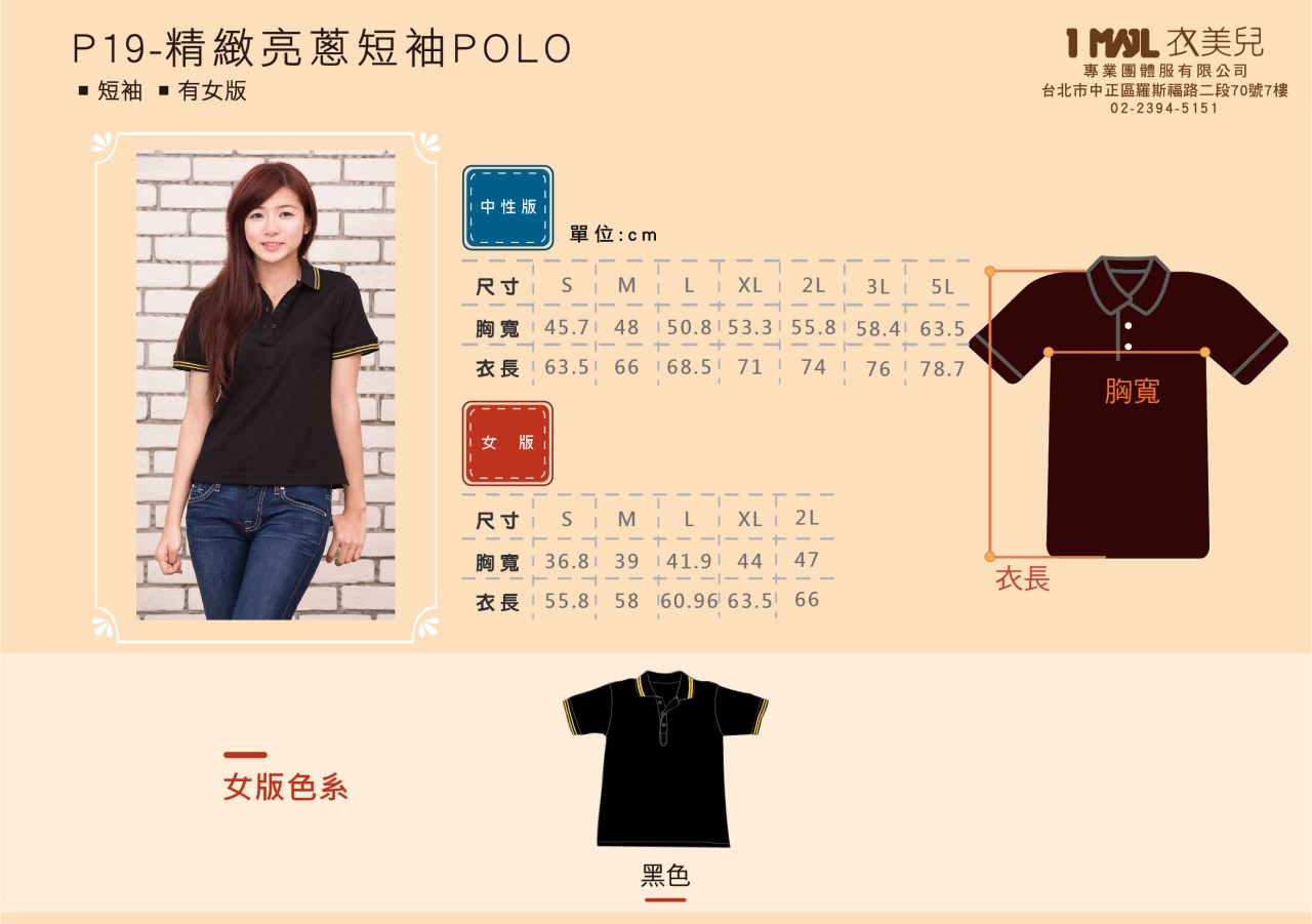 P19-精緻亮蔥短POLO(黑色)/排汗精梳棉