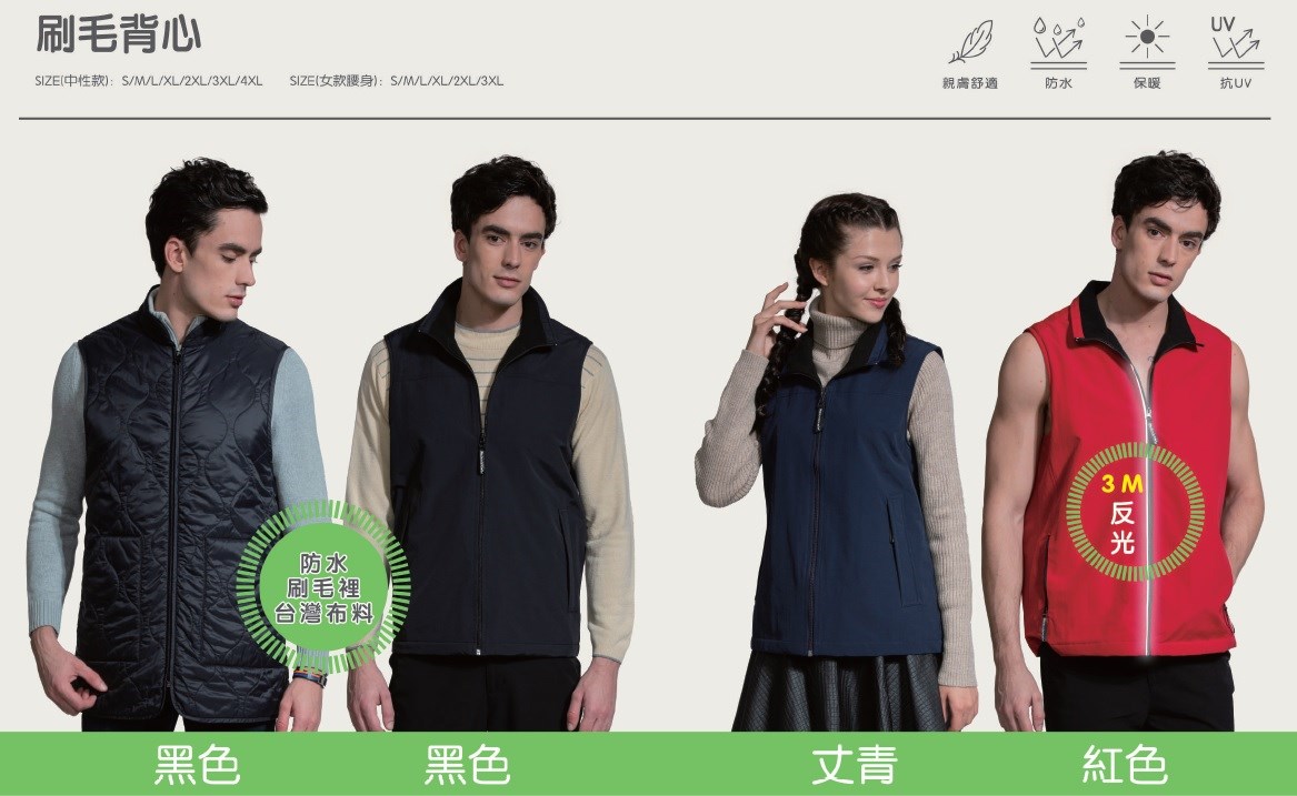 NYLON100% 外層防潑水質料, 內層保暖刷毛,溫暖舒適, 口袋有拉鍊。
