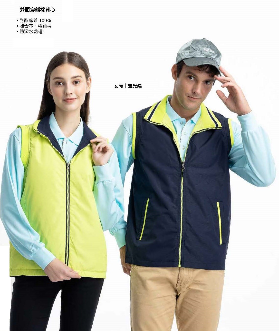 (厚)PA-04333雙面穿鋪棉背心/丈青螢光綠