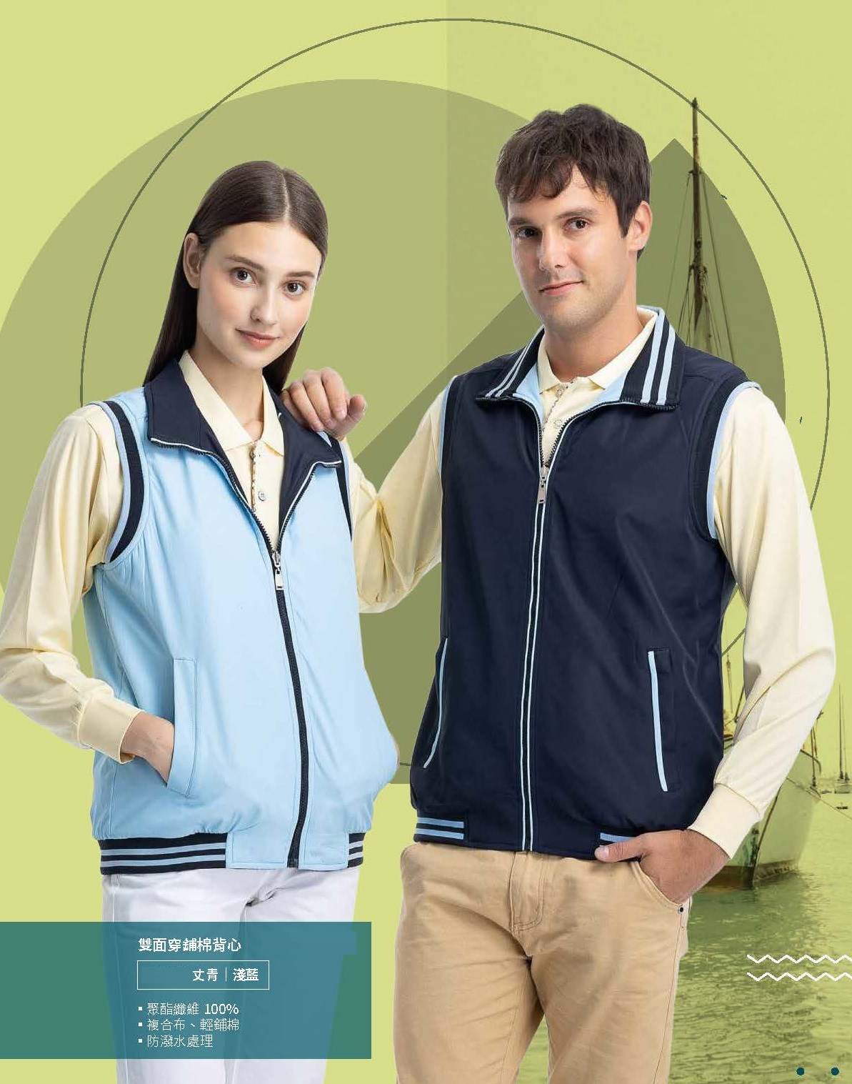 複合布/輕鋪棉/防潑水處理(聚酯纖維100%),適合秋冬,保暖舒適、時尚質感,提升專業形象。
