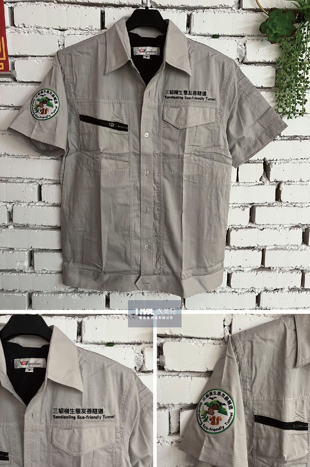 3. 多口袋、有筆插袋。下擺外放式與後背透氣孔設計,工作時不悶熱。後領貼加車吸濕排汗尼網,增加乾爽性。