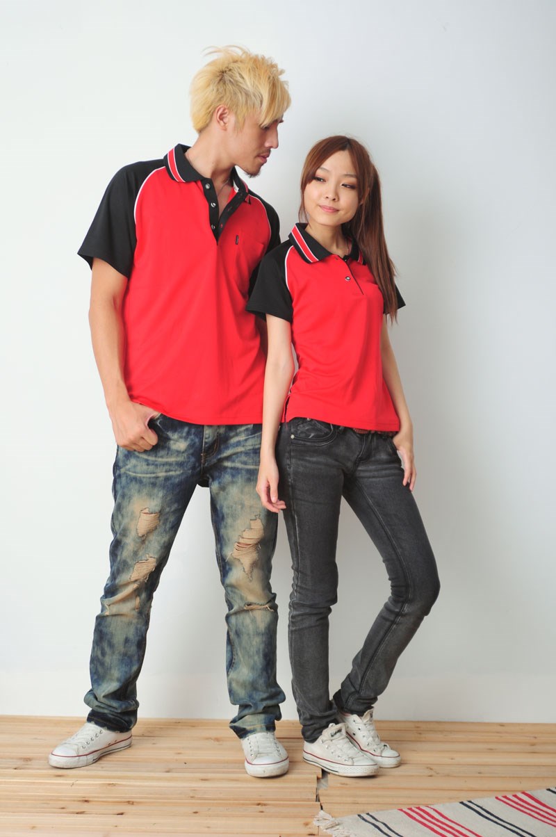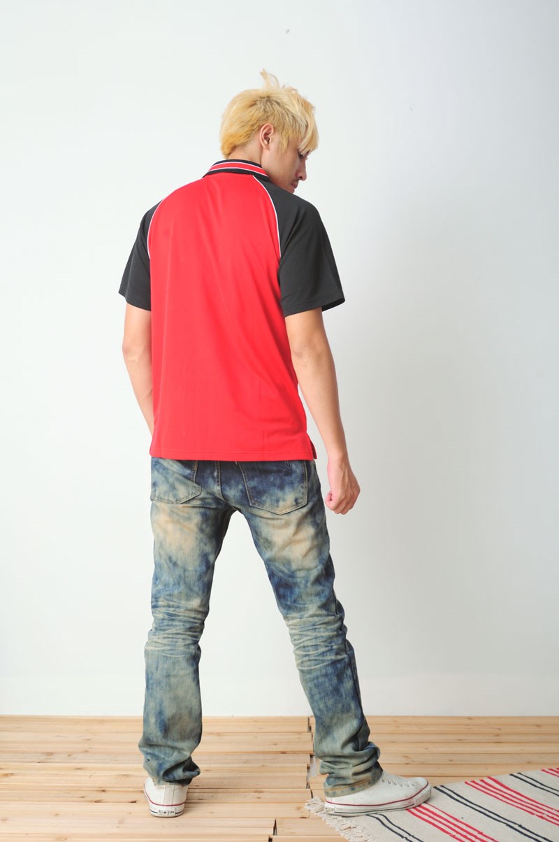 P7-棒球風排汗POLO衫(紅)/polyester100%