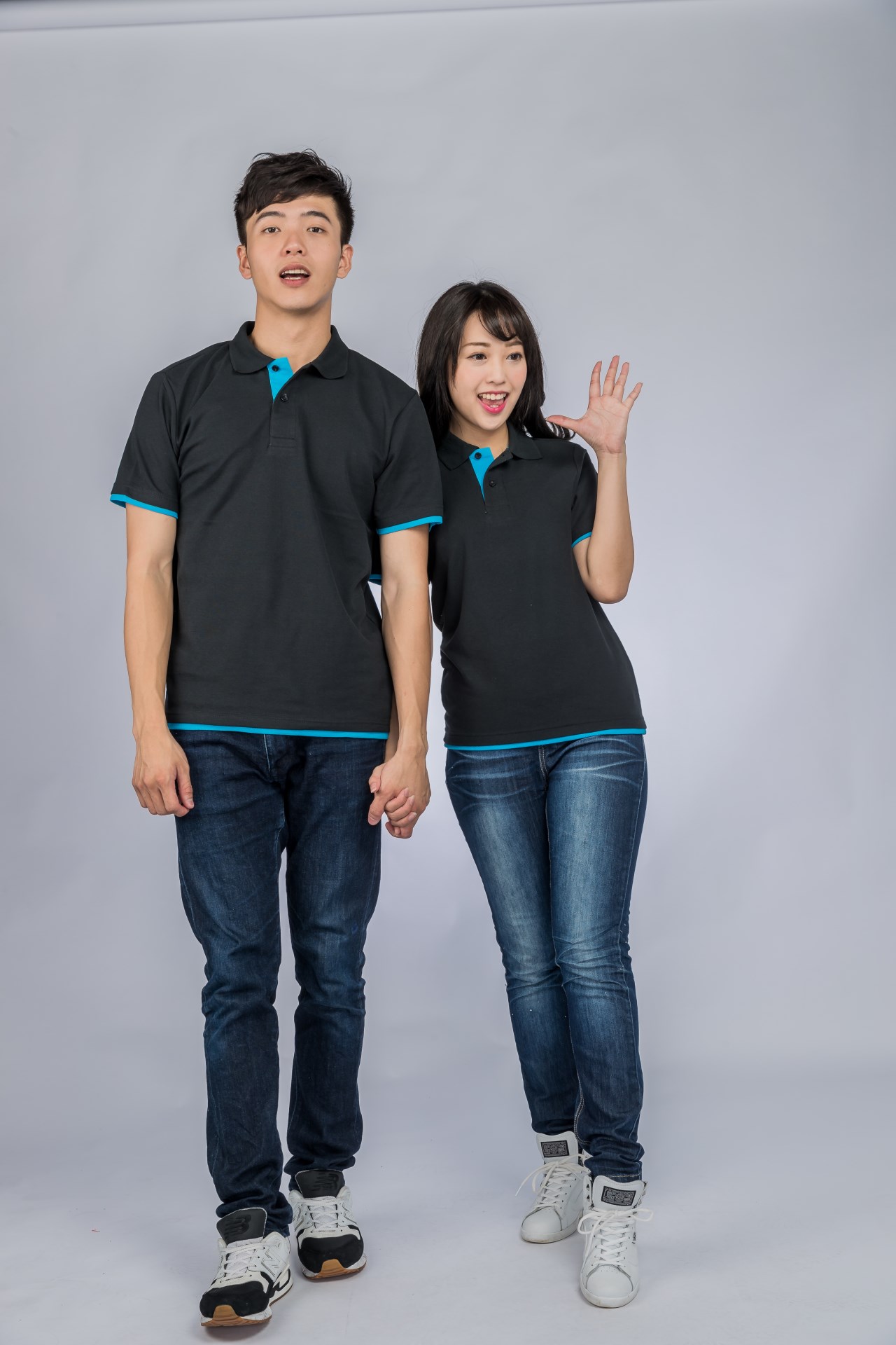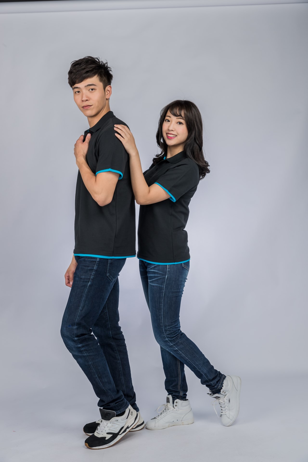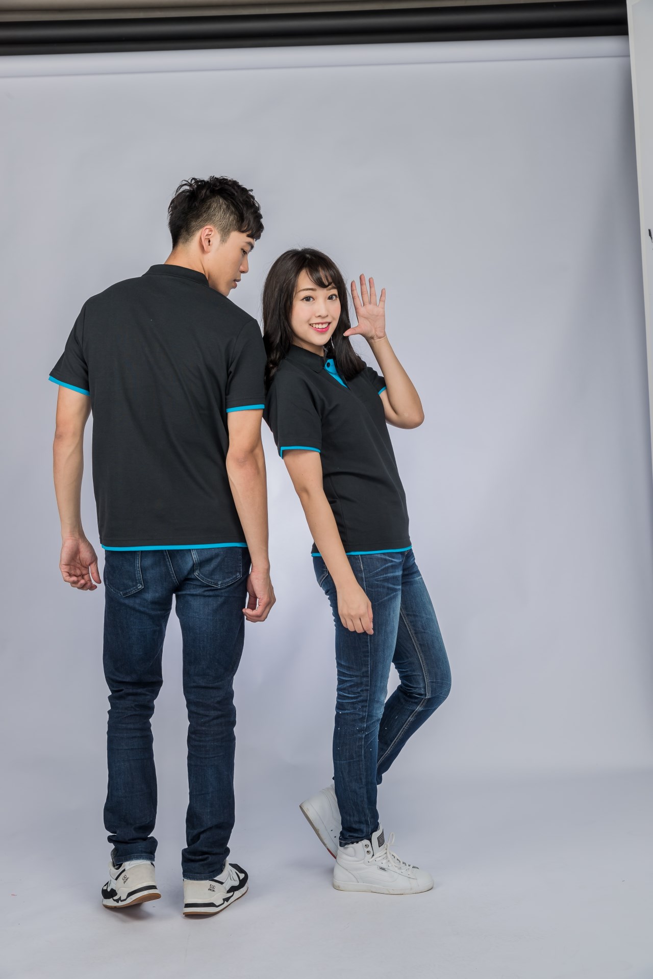 P42-經典網眼棉短POLO(黑+湖藍)/網眼棉