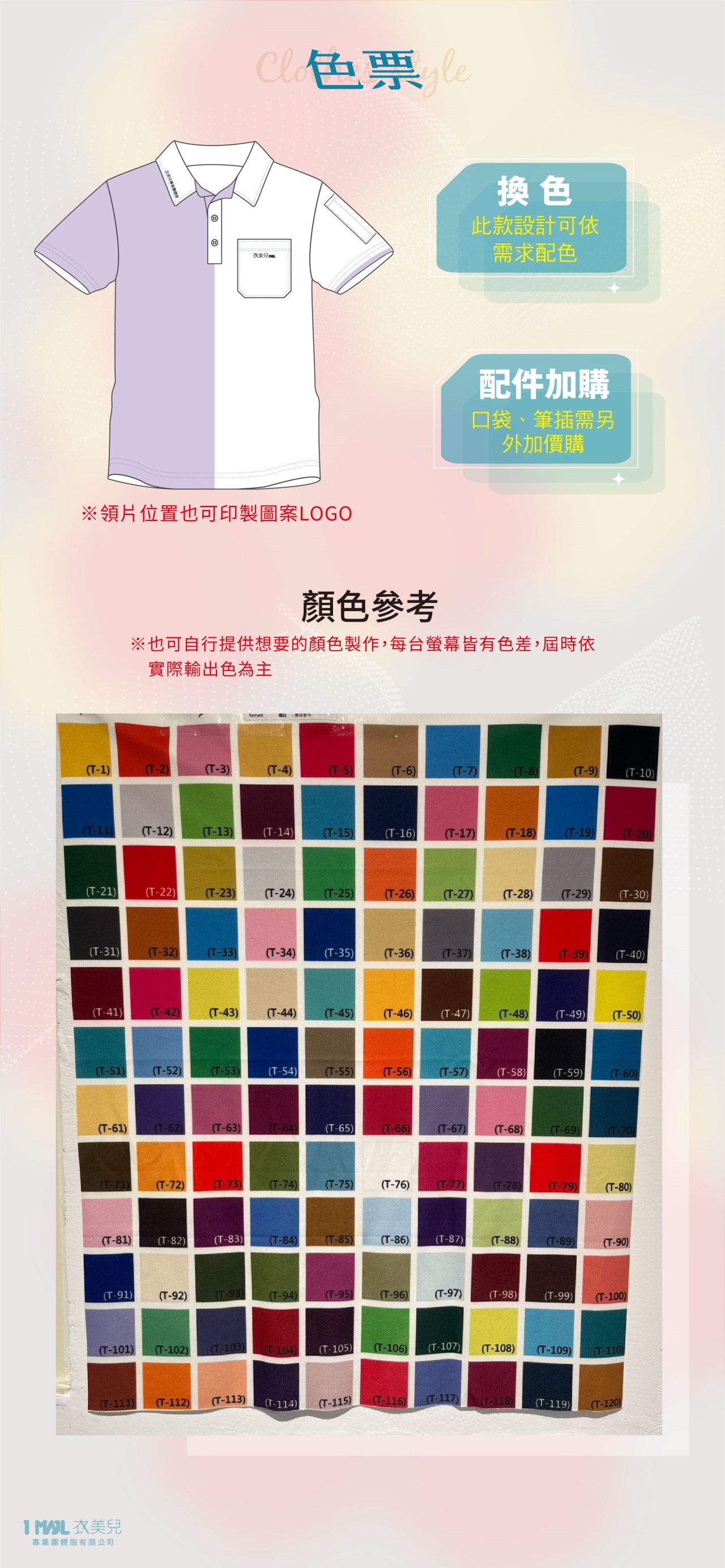 配件加價(每件):口袋+$45;筆袋+$45;數字每件不同+$110/單面(雙面+$220)