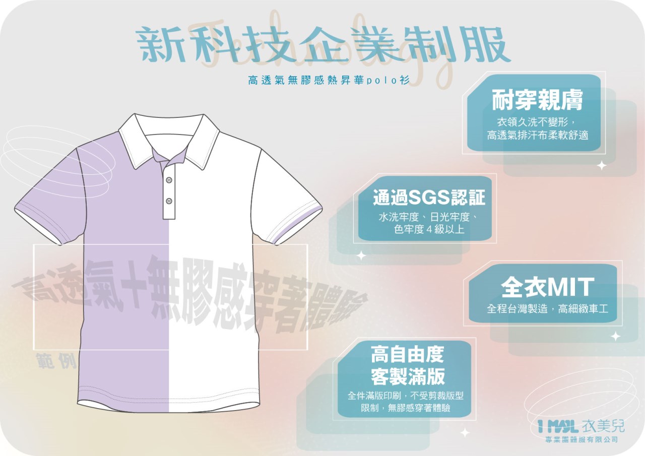 1.耐穿親膚 耐洗不變形:高透氣排汗布搭配無膠感印刷,柔軟舒適,耐穿耐洗,襯衫領造型,衣領久洗也不變形
