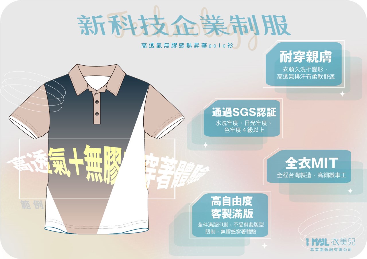 1.耐穿親膚 耐洗不變形:高透氣排汗布搭配無膠感印刷,柔軟舒適,耐穿耐洗,襯衫領造型,衣領久洗也不變形