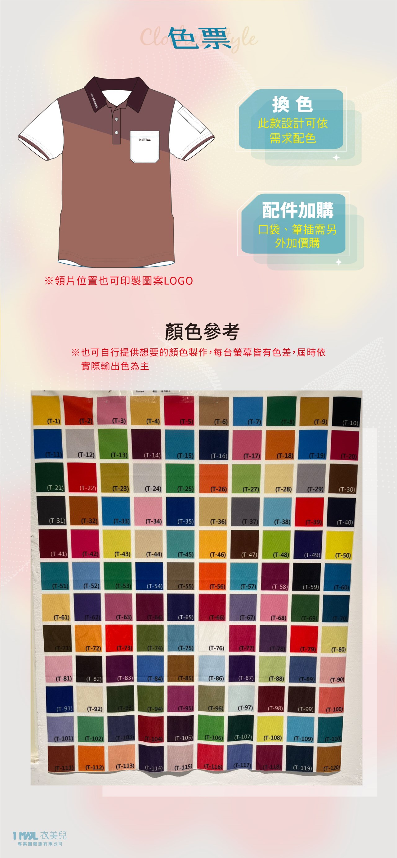 配件加價(每件):口袋+$45;筆袋+$45;數字每件不同+$110/單面(雙面+$220)