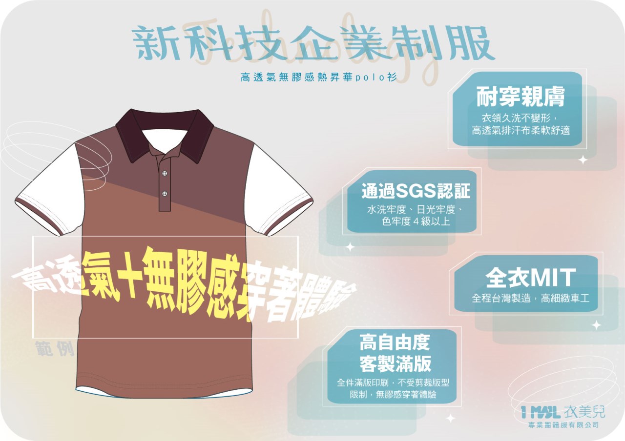 1.耐穿親膚 耐洗不變形:高透氣排汗布搭配無膠感印刷,柔軟舒適,耐穿耐洗,襯衫領造型,衣領久洗也不變形