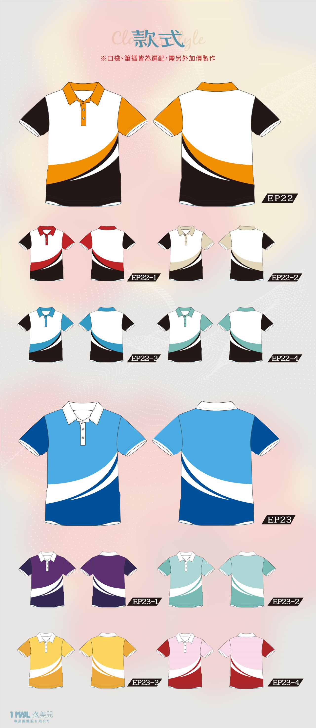 配件加價(每件):口袋+$45;筆袋+$45;數字每件不同+$110/單面(雙面+$220)