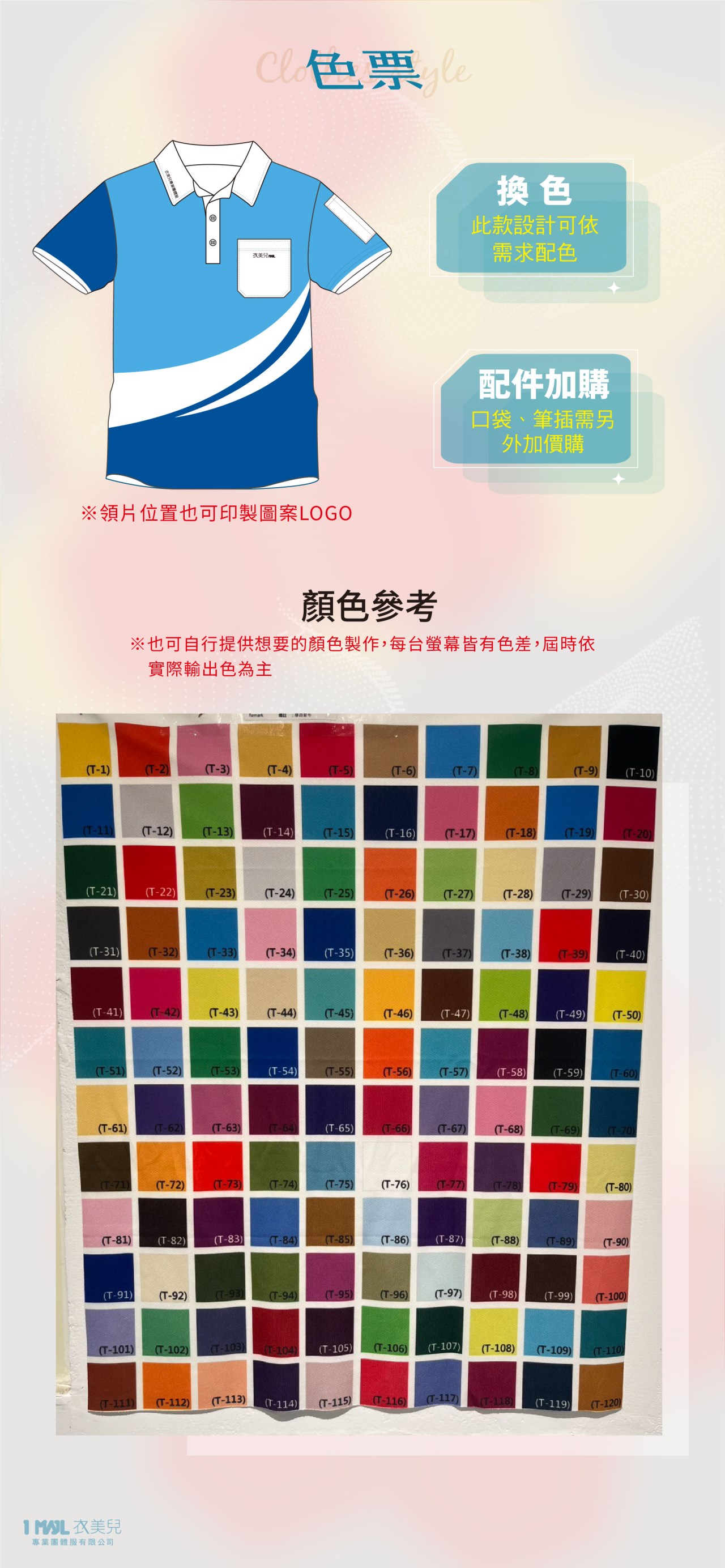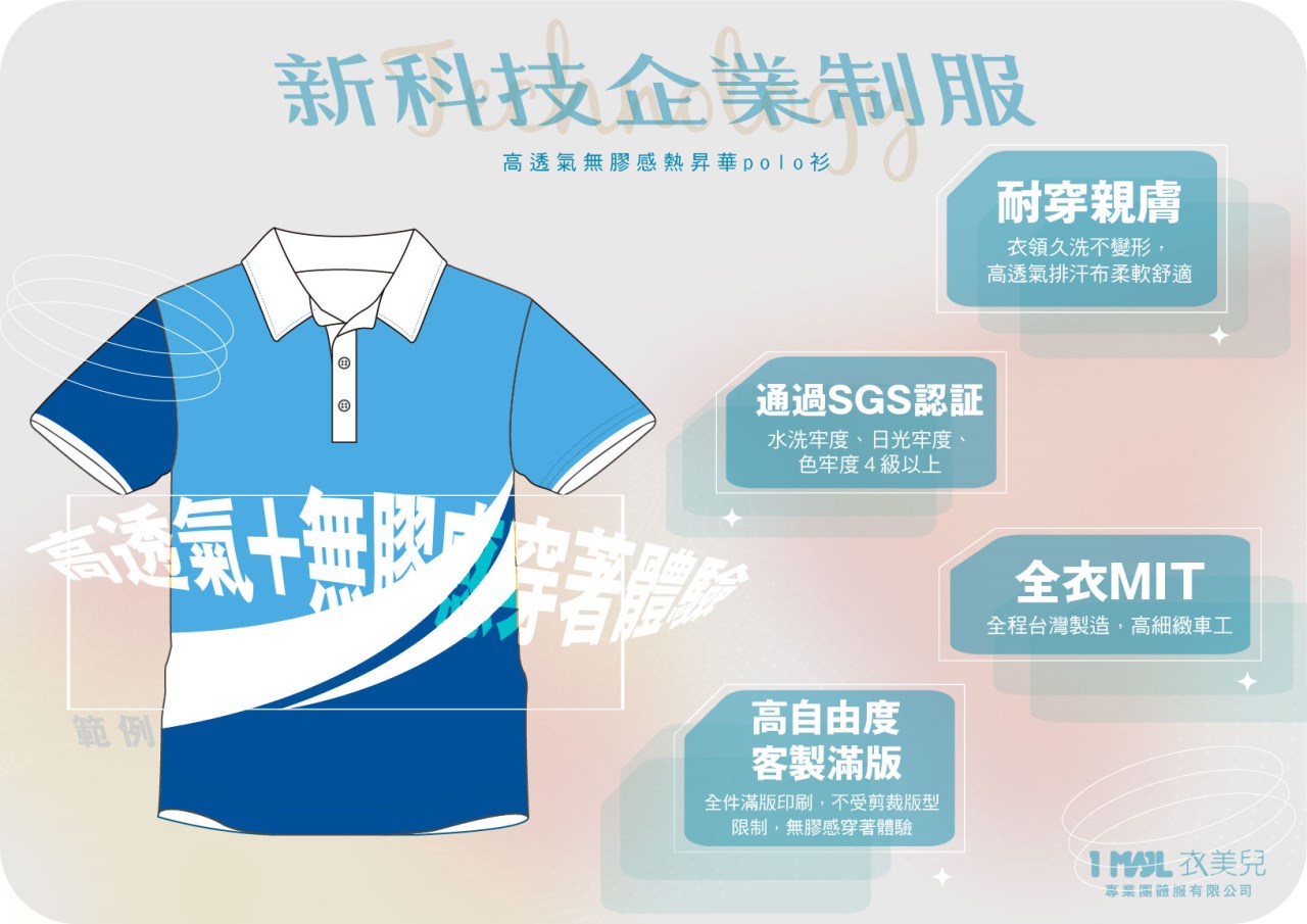 1.耐穿親膚 耐洗不變形:高透氣排汗布搭配無膠感印刷,柔軟舒適,耐穿耐洗,襯衫領造型,衣領久洗也不變形