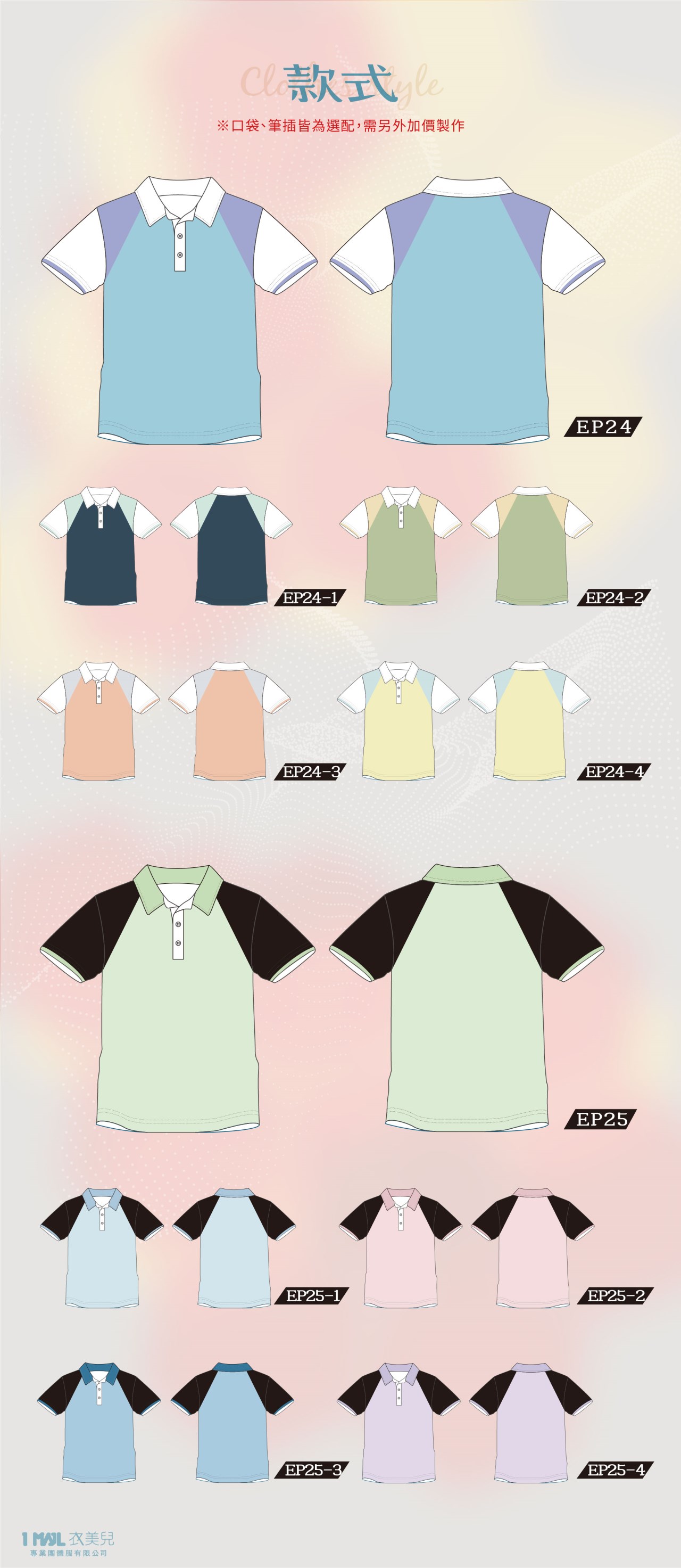 配件加價(每件):口袋+$45;筆袋+$45;數字每件不同+$110/單面(雙面+$220)