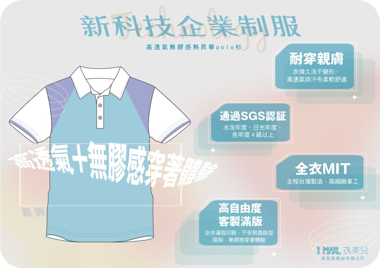 1.耐穿親膚 耐洗不變形:高透氣排汗布搭配無膠感印刷,柔軟舒適,耐穿耐洗,襯衫領造型,衣領久洗也不變形