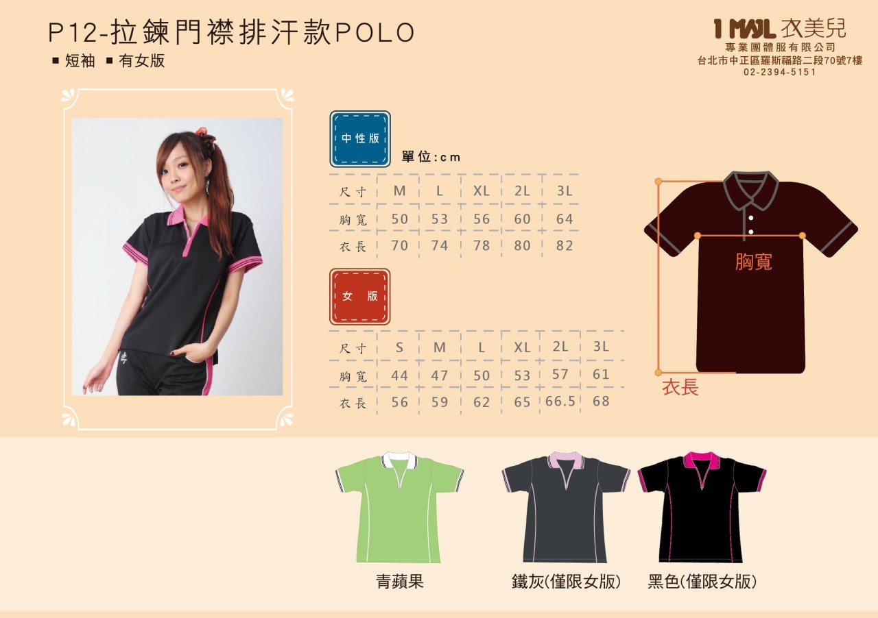 P12-拉鍊門襟排汗款(果綠)/100%polyester