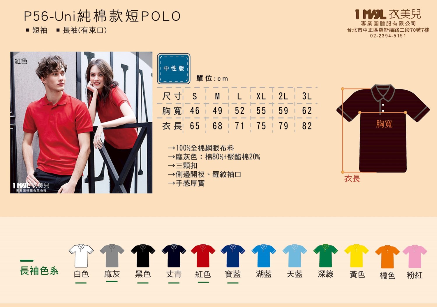 P56-Uni純棉款短POLO(共12色)/全棉網眼