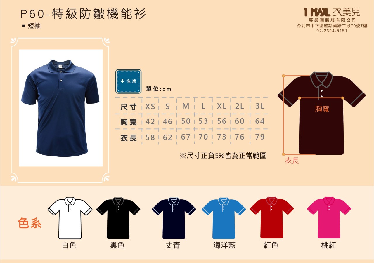 P60-特級防皺機能衫(共6色)/平面布吸濕排汗