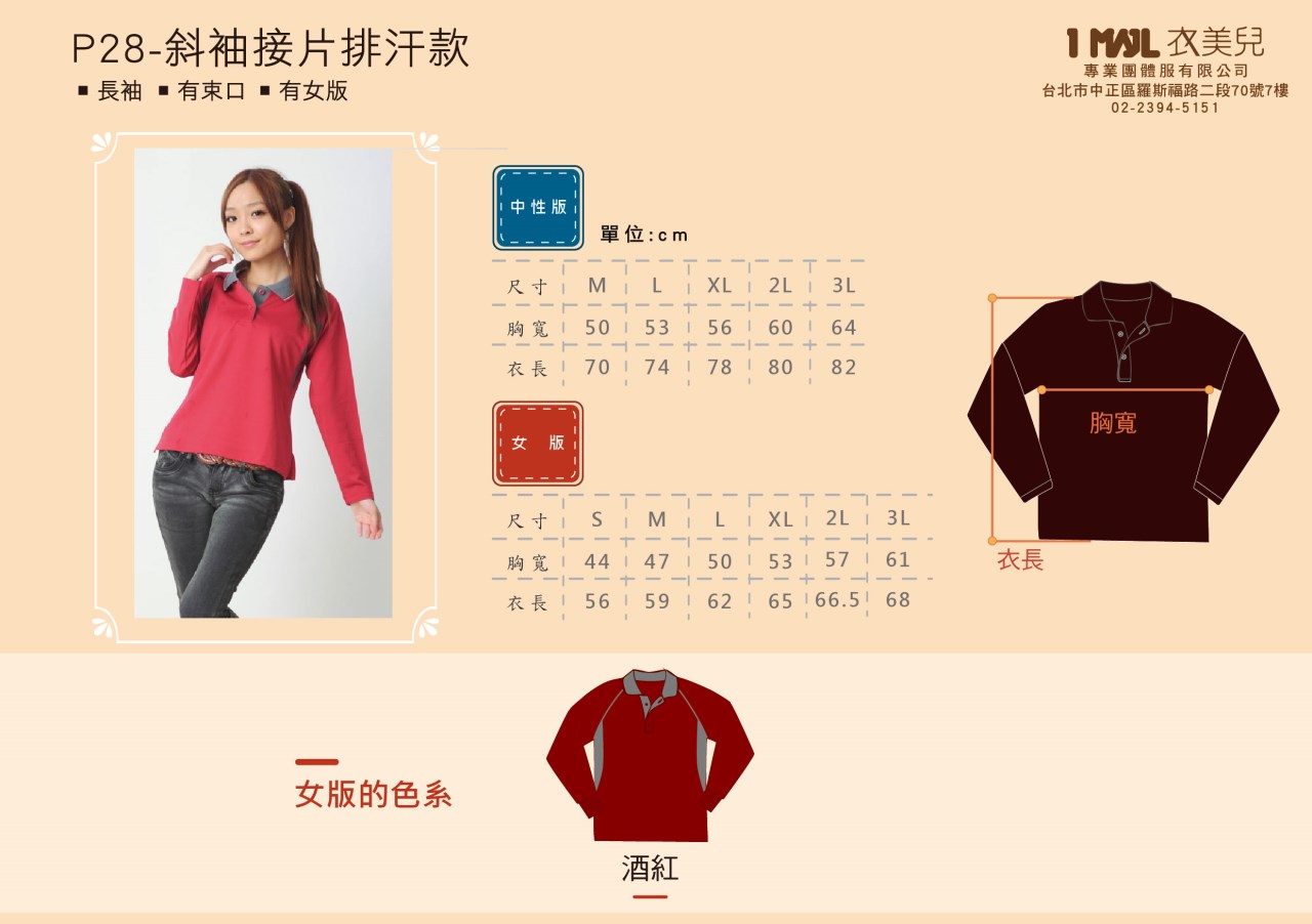 P28-斜袖接片排汗長POLO衫(共4色)/100%polyester
