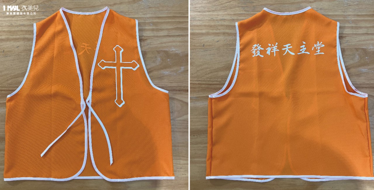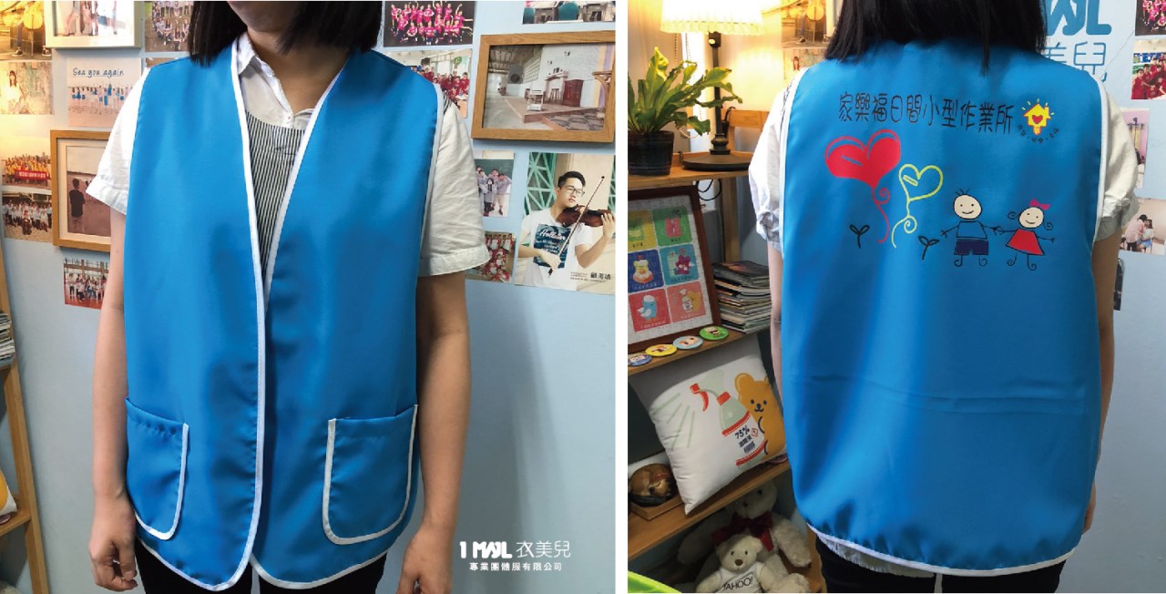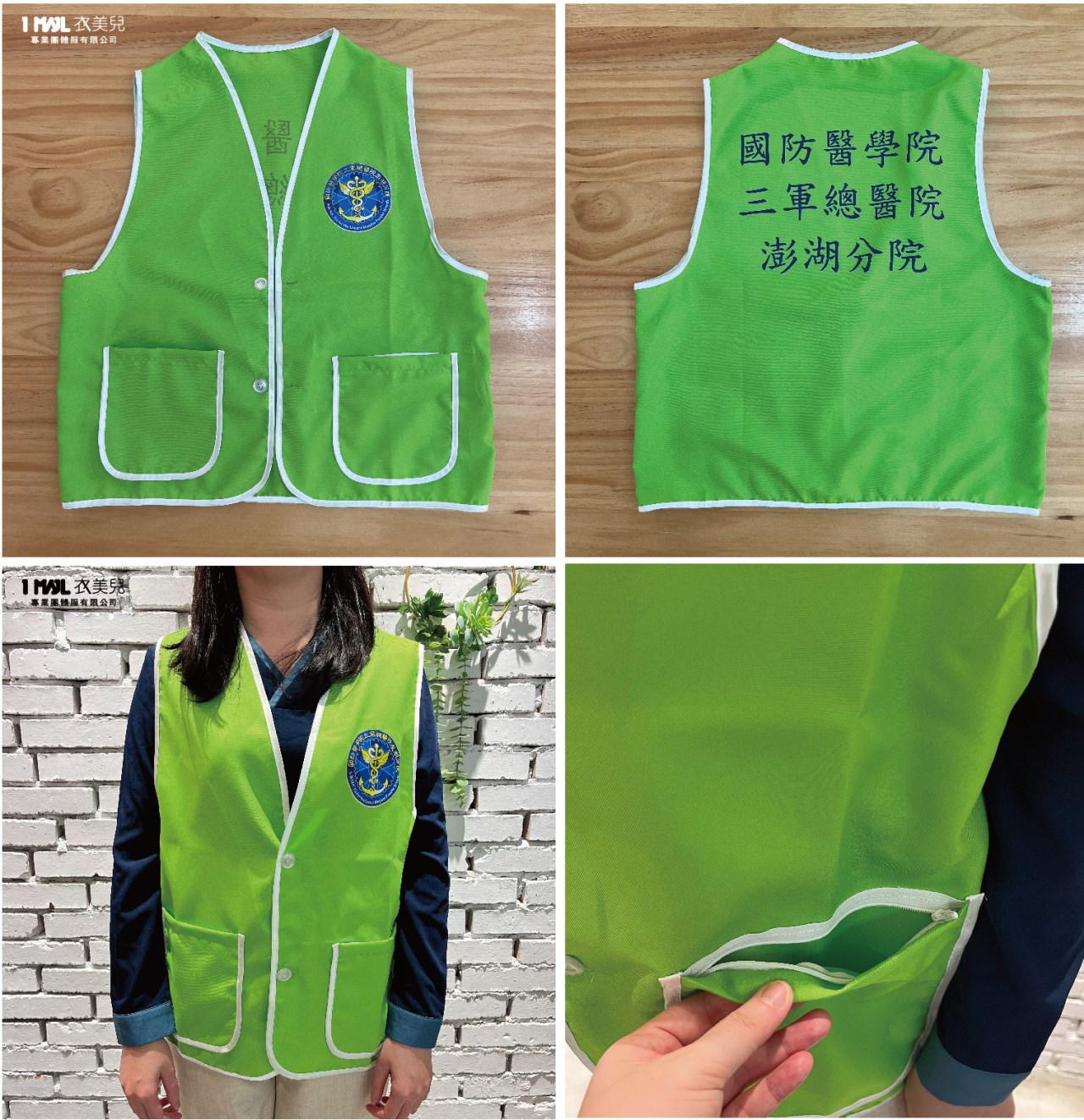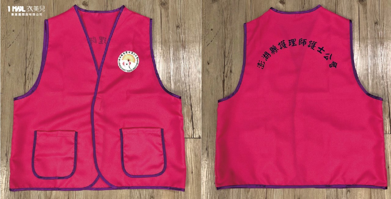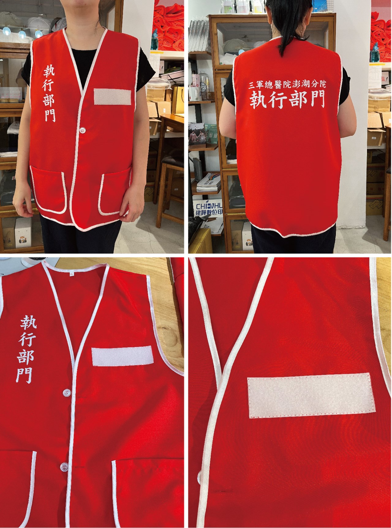 ▼搭配2顆扣、雙口袋;左胸+魔鬼氈(毛面);圖案轉印