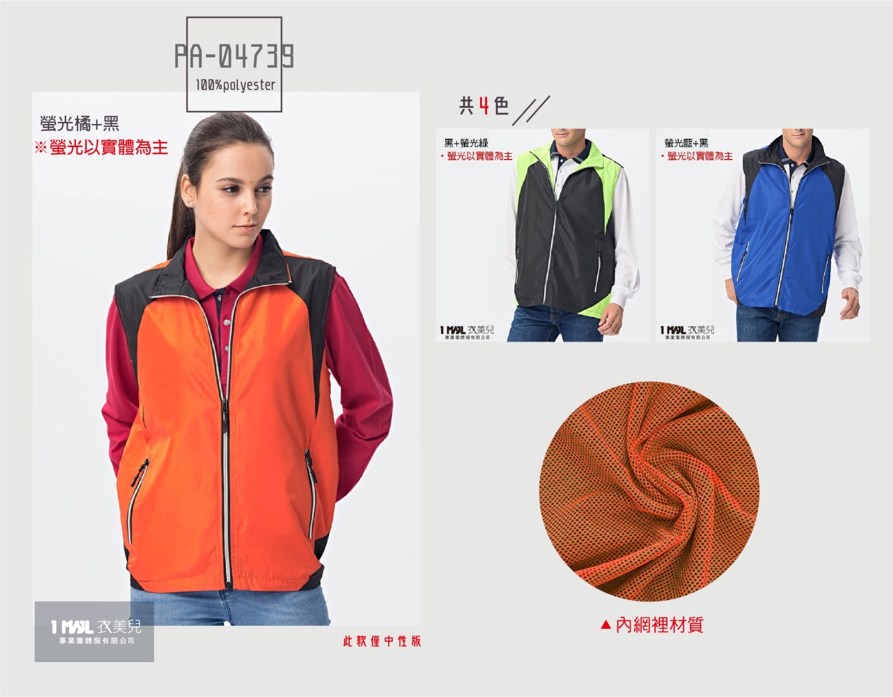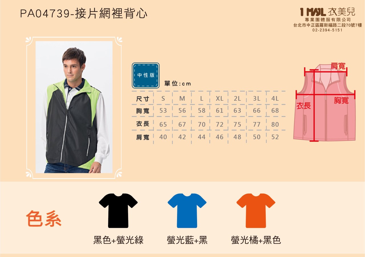 (薄)PA04739-接片網裡背心/螢光藍+黑