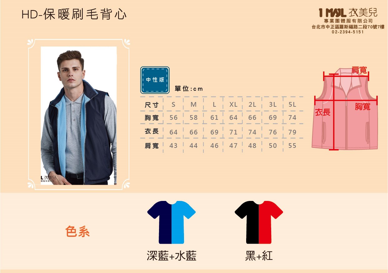 (厚)HD-雙面穿保暖刷毛背心/黑紅
