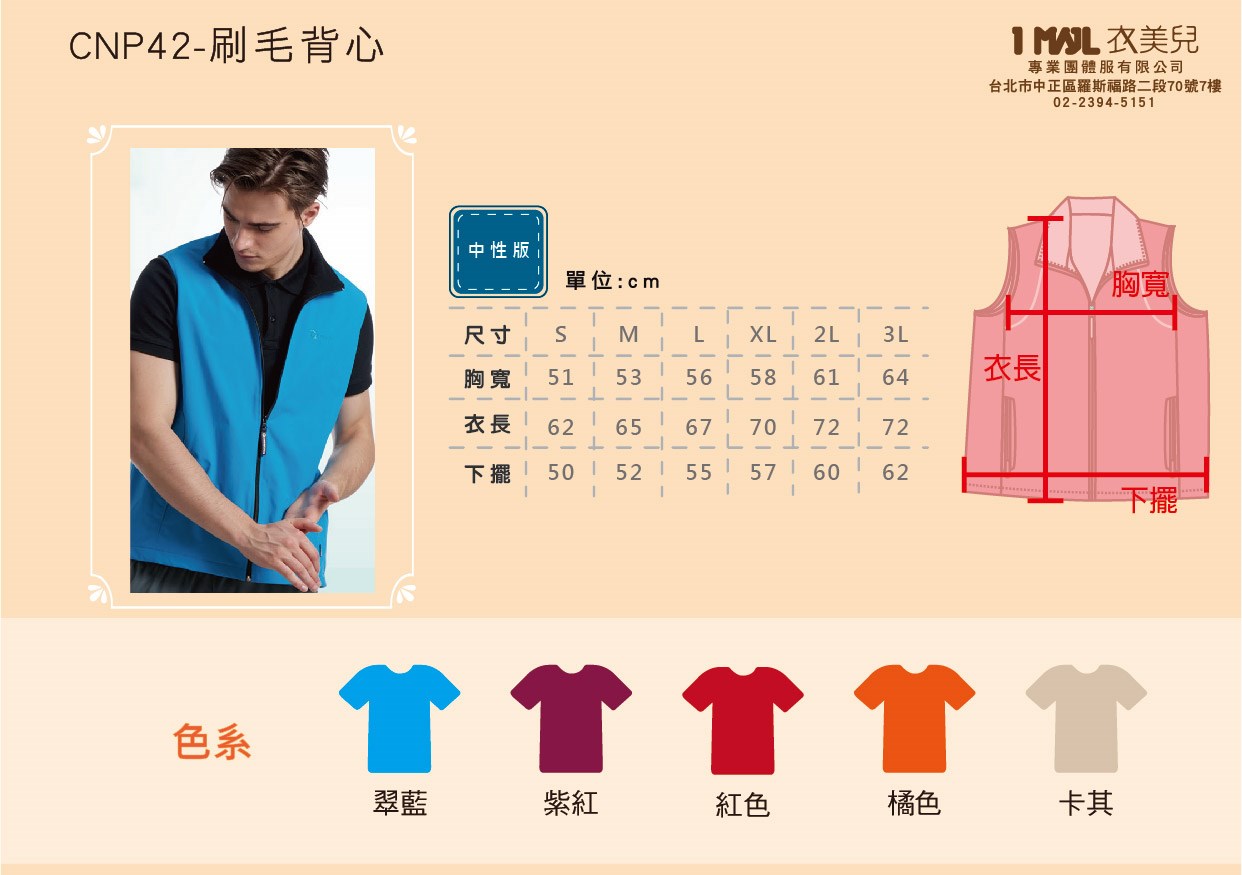 保暖厚款背心,外層防潑水功能,內層為刷毛布料。