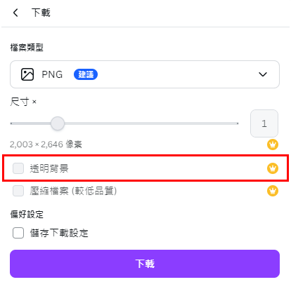 如是選擇PNG一定要打勾「透明背景」,若沒勾選我們收到檔案後也無法使用哦