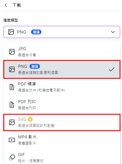 檔案類型自行選擇PNG或是SVG檔→「下載」